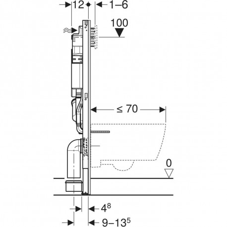 Geberit > Приховані інсталяції > Змивні бочки на гіпсокартонній перегоро 76 > Duofix > Стелаж прихований Geberit Duofix do wiszących misek WC, 112 cm, ze spłuczką podtynkową Sigma 12 cm, z króćcem для підключення odsysania powietrza wywiewnego