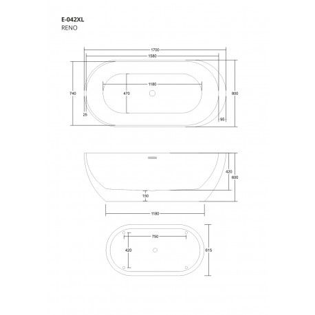 Corsan > Ванни > Ванни підлогові > Wanny > Ванна вільностоячий Corsan Reno 170 cm z wykończeniem чорним - біла