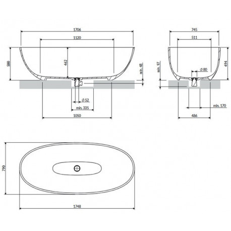 Omnires > Ванни > Ванни підлогові > Wolnostojące > Ванна вільностоячий Omnires Shell M+ 175x78cm - колір black lava мат.