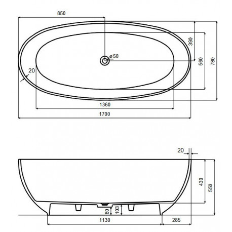 Besco > Ванни > Ванни підлогові > Assos > Ванна вільностоячий Besco Mexa 170x78 cm овальна Carbon Grey, maskownica чорний matt
