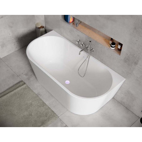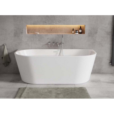Ванна пристінна Besco Vica, 150x80cm, акрилова, біла + maskownica syfonu z переливом чорна