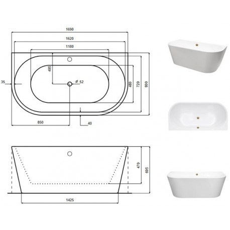 Колір ванни: білий