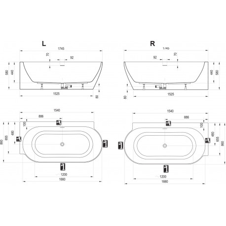 Ravak > Ванни > Ванни підлогові > Pozostałe > Ванна вільностоячий do ściany Ravak Freedom Corner II Tec, акрилова,175 x 86 cm, правий варіант - біла, ширма odpływu біла