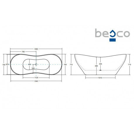 Besco > Ванни > Ванни підлогові > Viya > Ванна вільностоячий Besco Viya 160x70 cm, сифон klik-klak білий czyszczony od góry - білий matt