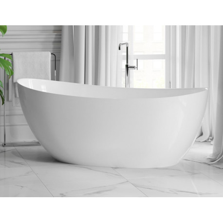 Omnires > Ванни > Ванни підлогові > Wanny wolnostojące > Ванна вільностоячий Emporia Luna 158x77x63 cm з конгломерату, bez zintegrowanego przelewu, з покриттям Snow White - біла