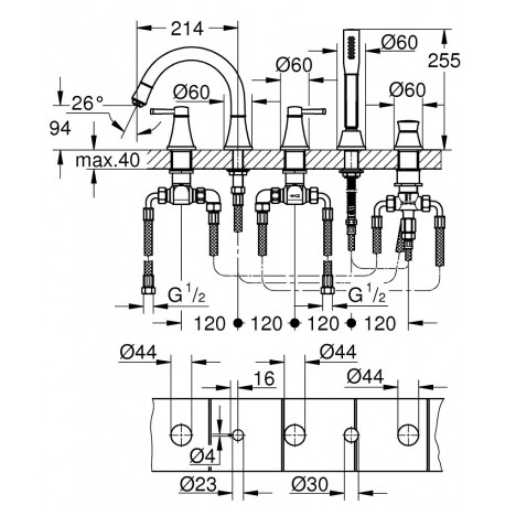 Grohe > Арамтура / батареї > ванні батареї на багато отворів > Grandera > Однорычажный для ванны Grohe Grandera pięciootworowa - хром