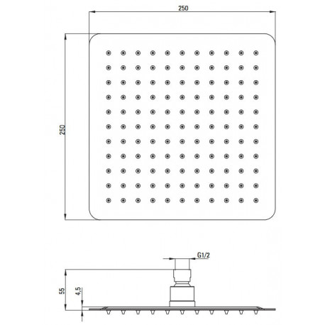 Deante > Арамтура / батареї > верхній душ > Cascada > Голівка верхнього душу Deante Cascada 250x250 mm, stalowa - titanium