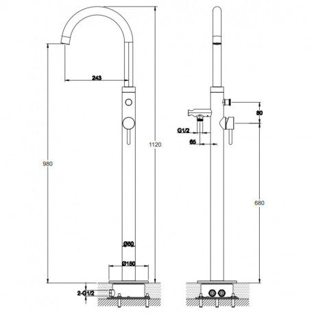 Omnires > Арамтура / батареї > відокремлені ванні батареї > Y > Змішувач для ванни, розташований окре 84 Omnires Y, з комплектом для душа, золотий szczotkowany