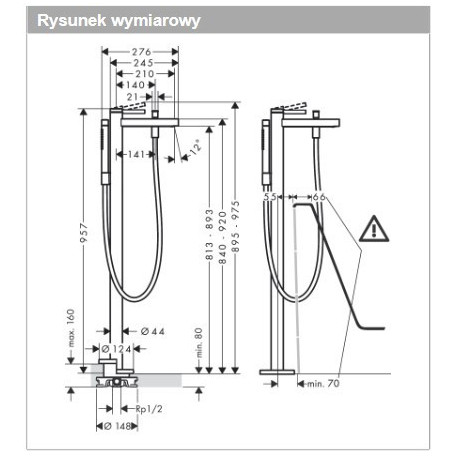 Комплект головний Hansgrohe/Axor для змішувача стоячий при ванні, установка в підлозі, DN 15 Серія: Zestawy podtynkowe