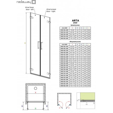 Двері душові wnękowe 45 cm ліве скло прозоре Radaway Arta DWD Серія: Arta
