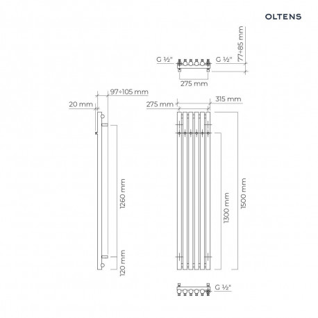 Oltens > Grzejniki > Дизайн радіатори > Stang > Обігрівач dekoracyjny Oltens Stang 150x31,5 cm - білий