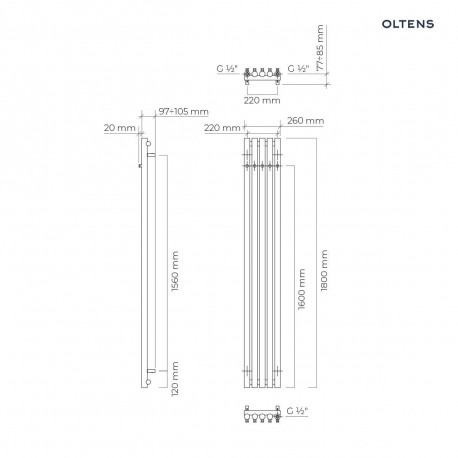 Oltens > Grzejniki > Дизайн радіатори > Stang > Обігрівач dekoracyjny Oltens Stang 180x26 cm - білий