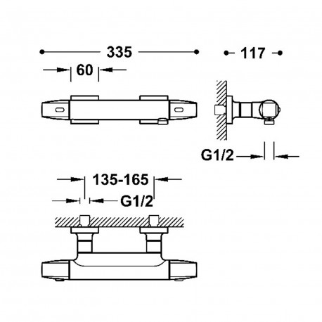 Tres > Арамтура / батареї > душові батареї змішувачі відкритого мон 90 > Over-Wall > Термостатичний настінний змішувач душова, TRES OVER-WALL - Сталь