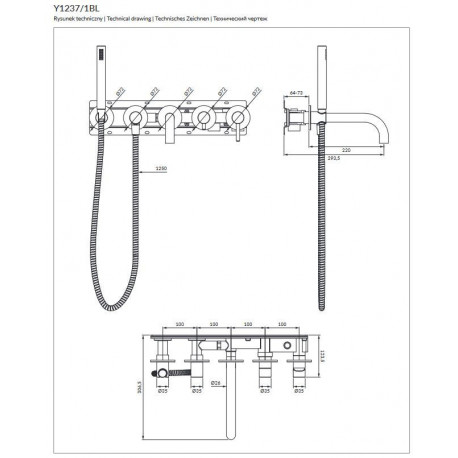 Omnires > Арамтура / батареї > душові батареї змішувачі закритого монт 72 > Y > Однорычажный для ванны Omnires Y 5-отвори прихований, grafit
