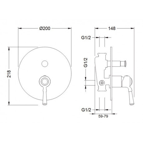 Blue Water > Арамтура / батареї > душові батареї змішувачі закритого монт 72 > Calitri > Змішувач душовий Blue Water Calitri одноважільний прихований з перемикачем - хром
