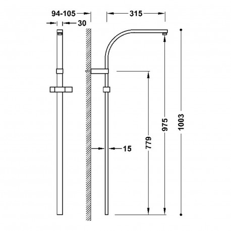 Довгий штанга душовий przystosowany для змішувача termostatycznej ściennej z kompatybilnym przyłączem, TRES OVER-WALL - Чорний бронза