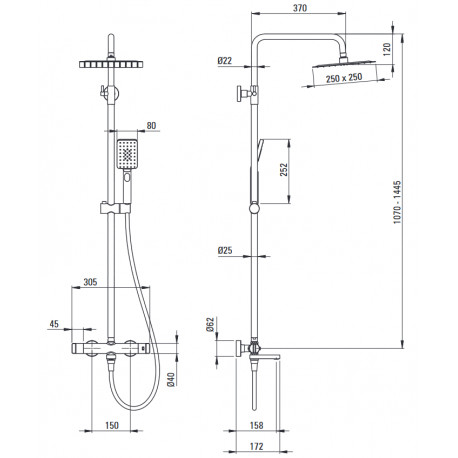 Deante > Арамтура / батареї > душові набори > Арамтура (батареї) > Верхній душ зі змішувачем wannową термостатичною, Deante ,nero
