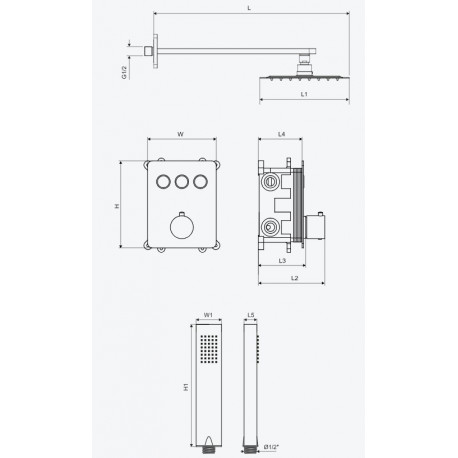 Excellent > Арамтура / батареї > душові набори > Zestaw prysznicowy > Комплект prysznicowo-для ванни Excellent Krotos, прихований з верхнім душем 20x30cm 3 funkcyjny - чорний мат.