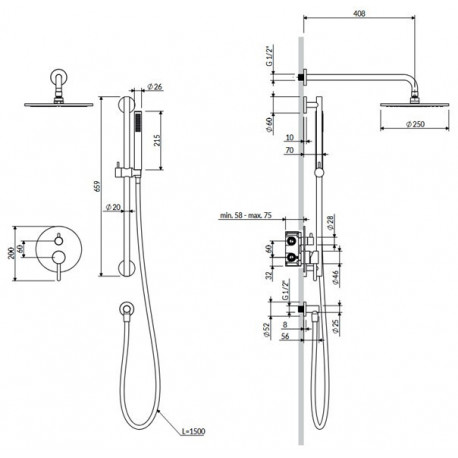 Omnires > Арамтура / батареї > душові набори > Y > Душова система Omnires Y прихований, з двома виходами - мідь szczotkowana