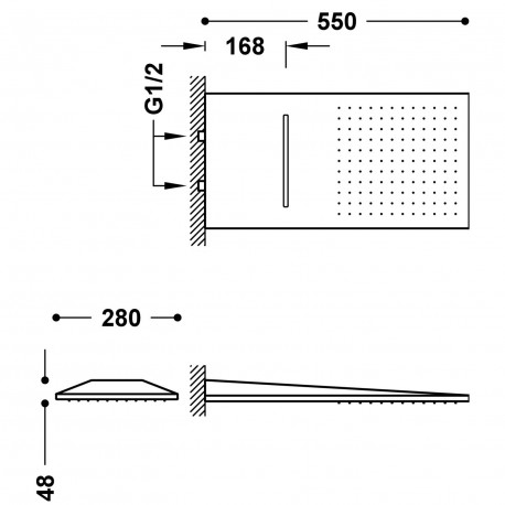 Верхній душ/ Душ настінний Tres 280x550 mm з каскадом, хром