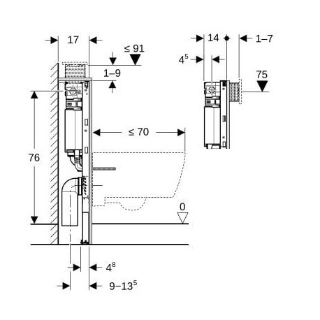 Geberit > Приховані інсталяції > Змивні бочки на гіпсокартонній перегоро 76 > Duofix > Стелаж прихований Geberit Duofix do wiszących misek WC, 82 cm, ze spłuczką podtynkową Omega 12 cm