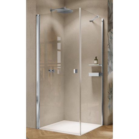 Huppe > Душові кабіни > Квадранті / прямокутні кабіни > Solva > Розпашні двері Huppe Solva частково "в каркас" чотирикут. 80x200 cm, кріплення ліве, установка на піддоні - скло прозорі Anti-Plaque, срібний глянцевий профіль
