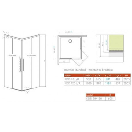 Двері кабіни Radaway Idea 8 QL KDD 90 cm, частина права - скло прозоре, profil хром Серія: Idea