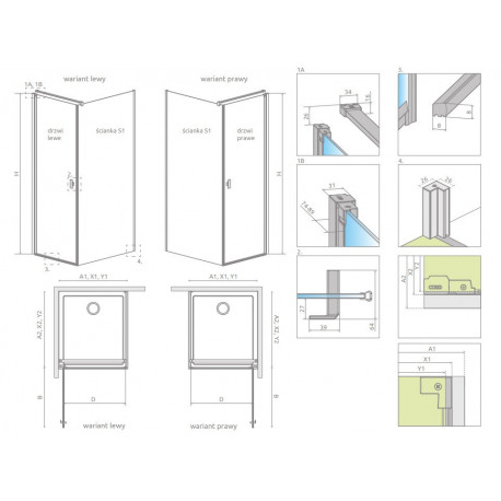 Radaway > Душові кабіни > Квадранті / прямокутні кабіни > Nes > Бічна стінка S1 Radaway Nes Black KDJ I Frame 90, чорна ramka, 900x2000mm