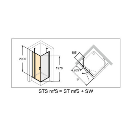 Huppe > Душові кабіни > Квадранті / прямокутні кабіни > 501 Design > Розпашні двері Huppe Design pure чотирикут., 800mm, з фіксованим сегментом, маятникові, універсальні, Anti-Plaque, profil хром eloxal