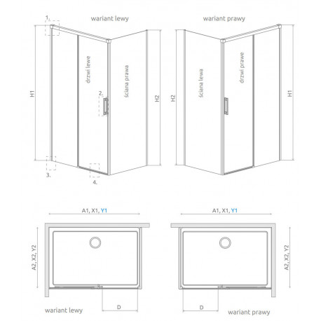 До укомплектування кабіни należy zamówić dwa produkty: двері oraz ściankę boczną S1 lewą
