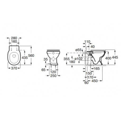 Roca > Санфаянс (Санітарна кераміка) > Унітази підлогові > Carmen > Раковина WC Roca Carmen підлогова 37x56 cm o/подвійний - біла