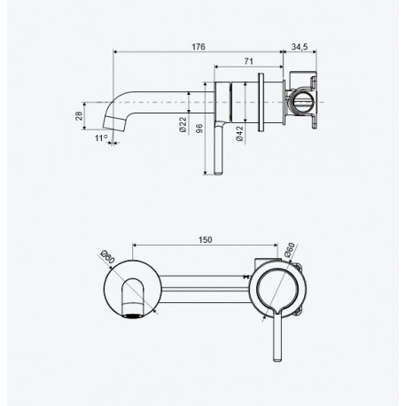 Excellent > Арамтура / батареї > настінні батареї для раковин > Promocje Excellent > Змішувач для умивальника Excellent Delta Pi, прихований, zasięg wylewki 176 mm - чорний мат.