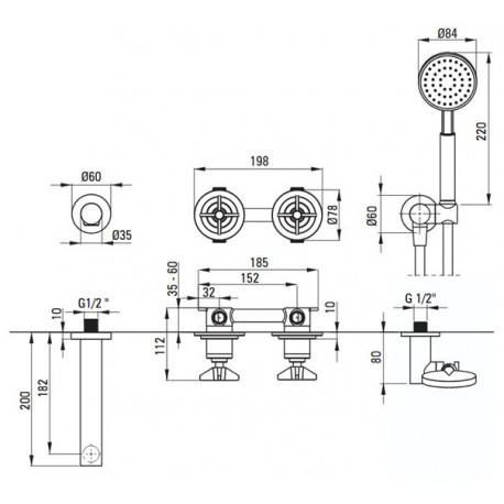 Однорычажный для ванны прихований Deante Temisto з комплектом для душа - nero