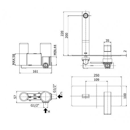 Paffoni > Арамтура / батареї > настінні батареї для раковин > Elle / Effe > Змішувач для умивальника Paffoni Effe, прихований, zespolona, 200mm, хром