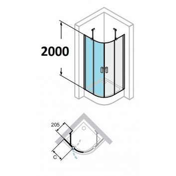 Huppe > Душові кабіни > Півкруглі кабіни > 501 Design > Розпашні двері ze stałymi segmentami Huppe Design PURE, 1-частина, 80 cm, wys. 200 cm, срібний мат., прозоре скло