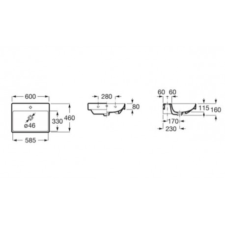 Roca > Санфаянс (Санітарна кераміка) > Підвісні раковини > Ona > Малий умивальник настінний Roca Ona 60x46 cm FIineceramic, з покриттям Superglaze - біла