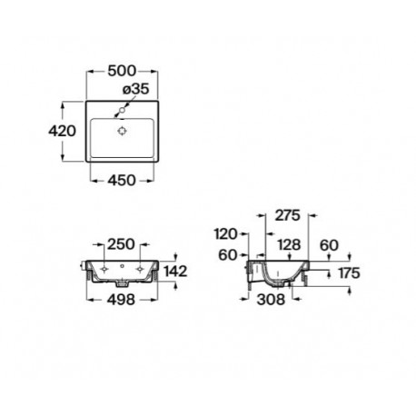 Roca > Санфаянс (Санітарна кераміка) > Підвісні раковини > Gap > Умивальник настінний Roca Gap, 50 x 42 cm з отвором na baterie, z переливом - біла