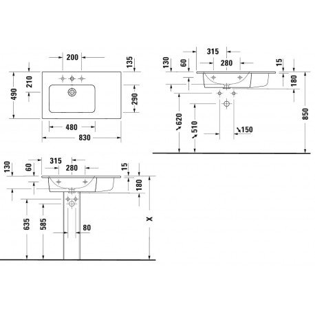 Duravit > Санфаянс (Санітарна кераміка) > Підвісні раковини > ME by Starck > Асиметричний умивальник Duravit ME by Starck 83x49 cm, 1 отвір для змішувача з лівої stronie, з покриттям z WonderGliss - біла