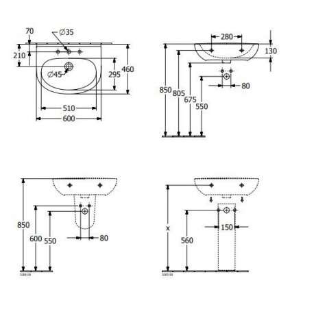 Villeroy & Boch > Санфаянс (Санітарна кераміка) > Підвісні раковини > O.Novo > Умивальник Villeroy & Boch O.Novo навісна 60x46 cm, з отвором для змішувача, z переливом - біла
