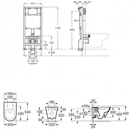 Roca > Санфаянс (Санітарна кераміка) > Підвісні унітази > Gap > Комплект прихований Roca DUPLO ONE + раковина WC підвісна GAP ROUND RIMLESS з сидінням з мікроліфтом SLIM, біла