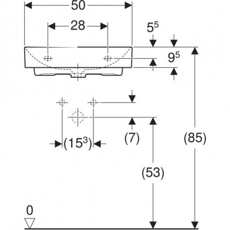 Geberit > Санфаянс (Санітарна кераміка) > Umywalki meblowe > One > Умивальник мала Geberit One 50x41 cm, з отвором na baterie, без переливу, powłoka KeraTect - біла