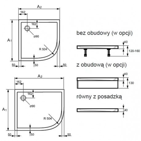 Піддон акриловий розміром 90х90 см | 15 € | 20 € | 30 € | |