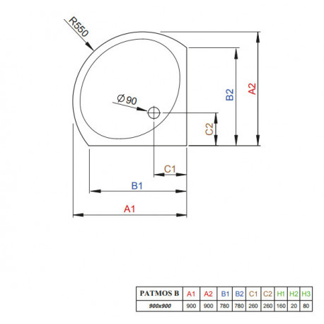 Radaway > Піддони > Піддони акрилові > Півкруглі > Акриловий піддон Radaway Patmos B 90x90 cm напівкруглий