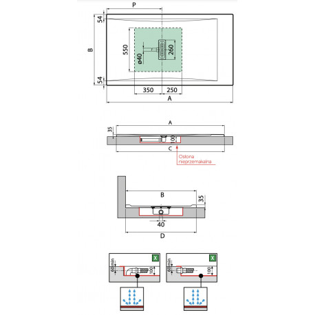 Novellini > Піддони > Піддони акрилові > Custom > Піддон прямокутний Novellini Custom, 140x90cm, установка на підлозі, висота 3,5cm, акрил, możliwość przycinania, бежевий