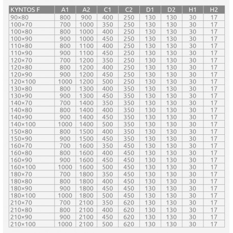 | Піддон акриловий розміром 90х90 см | 15 € | 20 € | 30 € | |