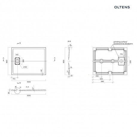 Oltens > Піддони > Піддони із мінерального литва > Bergytan > Oltens Bergytan піддон прямокутний 100x80 cm RockSurface - kaszmir