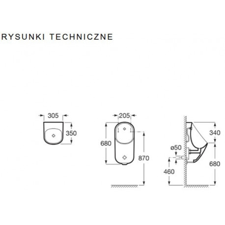Roca > Санфаянс (Санітарна кераміка) > Пісуари > Proton > Пісюар електронний Roca Proton (подача знизу) з електроживленням sieciowym 230V - білий