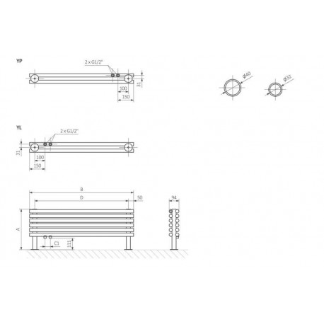 Terma > Радіатори опалення > Tune HSD > Tune HSD > Обігрівач Terma Tune HSD (вільностоячий) 30x140 cm - RAL i Колірy Спеціальні