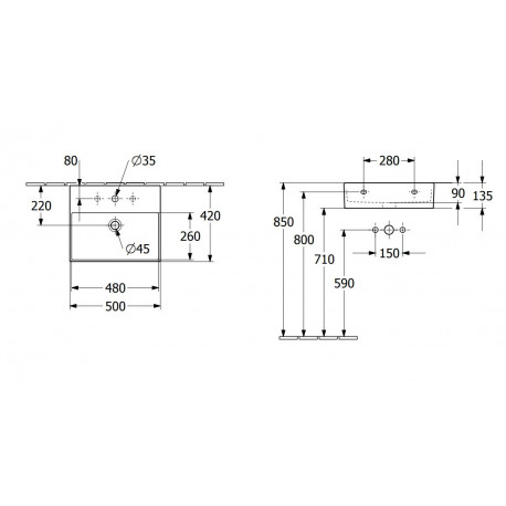 Villeroy & Boch > Санфаянс (Санітарна кераміка) > Раковини на п'Єдесталі > Memento > Умивальник Villeroy&Boch Memento 2.0 прямокутна 50x42cm, z переливом - біла