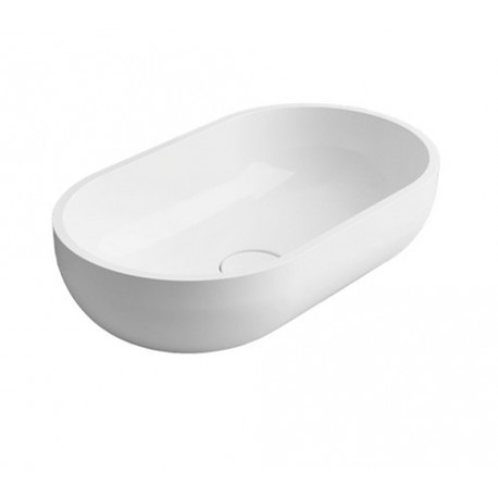 Omnires > Санфаянс (Санітарна кераміка) > Раковини на п'Єдесталі > Fira > Умивальник на стільницю Emporia Fira 60x35 cm, konglomeratowa, без переливу, з накладкою na клапан, з покриттям Snow White - біла